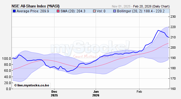 NSE All Share Index (NASI) reaching an all-time high above 202 points in February 2026.